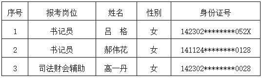 根據(jù)鑫富源人力資源集團(tuán)公司于2025年11月21日發(fā)布的《呂梁市離石區(qū)人民法院2025年司法輔助人員招聘公告》的要求,經(jīng)過網(wǎng)上報(bào)名、資格審查、初試、資格復(fù)審、面試、體檢等環(huán)節(jié),現(xiàn)對擬錄用人員予以公示,具體如下: